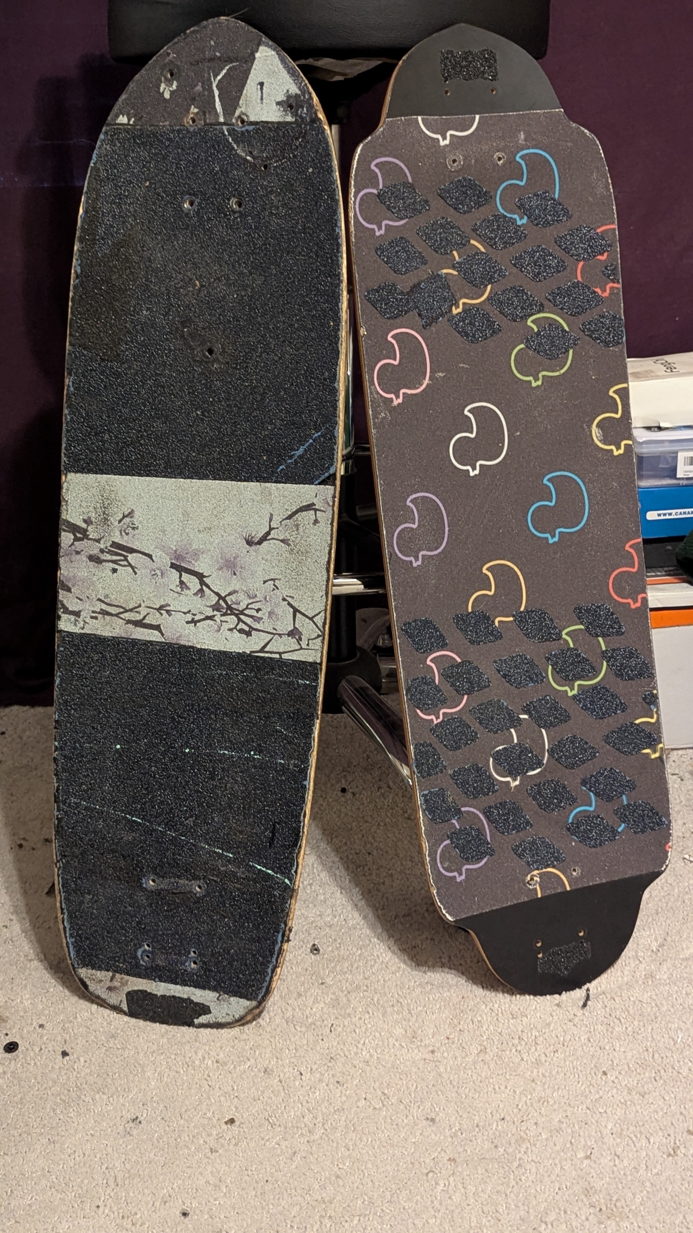 The Equinox freeride deck has not been ridden. I gripped it in neon ducks with Lokton shapes affixed with adhgesive to the top